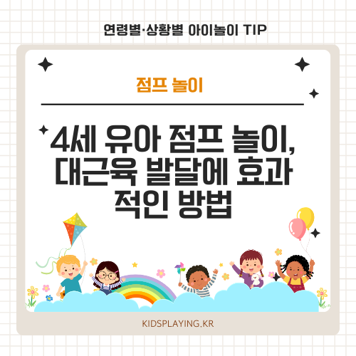 By - KidsplayingPosted on 4월 8, 20264월 8, 20264세 유아 점프 놀이, 대근육 발달에 효과적인 방법4세 유아 점프 놀이, 대근육 발달에 효과적인 방법